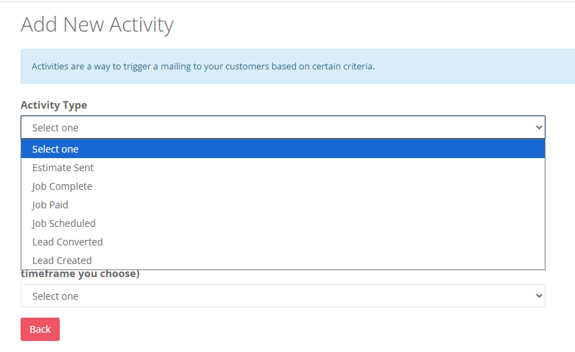 Step 4: When you are adding an activity that you would like to happen, you can choose from the following