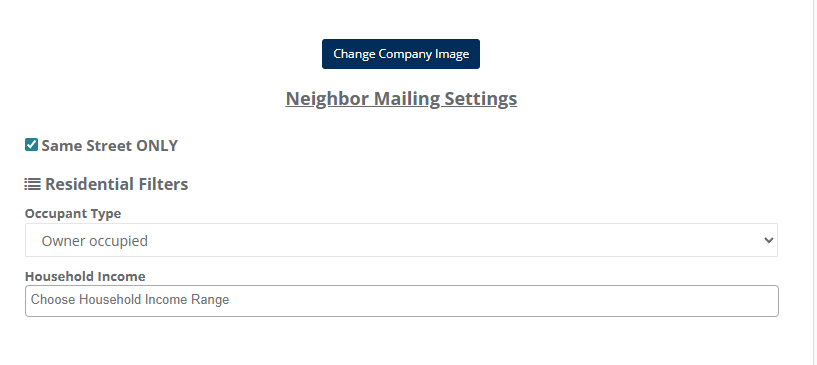 Same Street ONLY- Checking this box off will result in your Neighbor Mailings being limited to the exact same road as your customer. If for example you check the box off and are trying to mail to 10 neighbors but your customer lives on a road with only 5 other neighbors, it will only charge you and mail to 5 not 10 since it's limited to the same road.