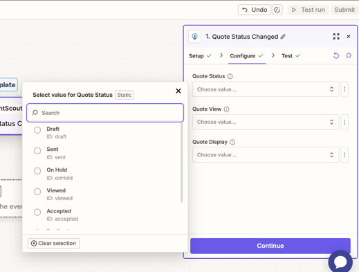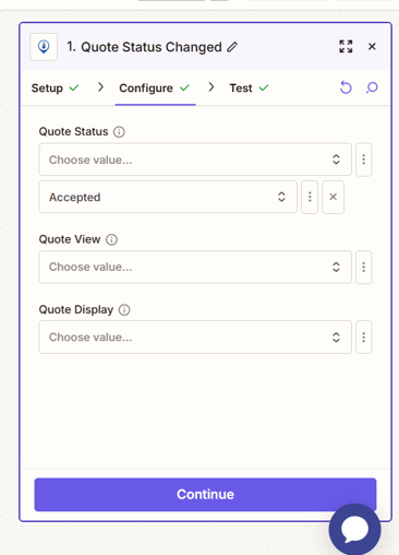 - We've Chose when the Quote Status is "Accepted" but you can choose the status that works best for you.