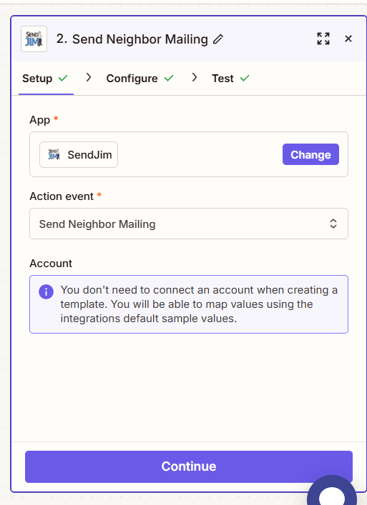 - Before you click Test Step in the Zap, be sure to go into your SendJim account and set up your CRM settings.