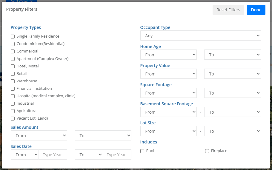 Steps 3: Pull up the different filter options using either the Property or Demographic buttons in the top left corner of your map.