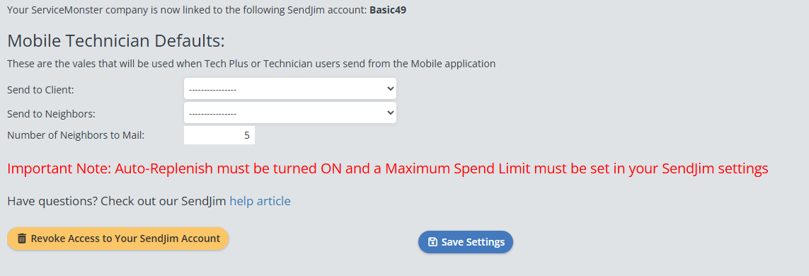 Watch the video or follow the written instructions below to learn how to connect ServiceMonster and SendJim together as well as all the different ways you can send mailings through SendJim inside ServiceMonster.